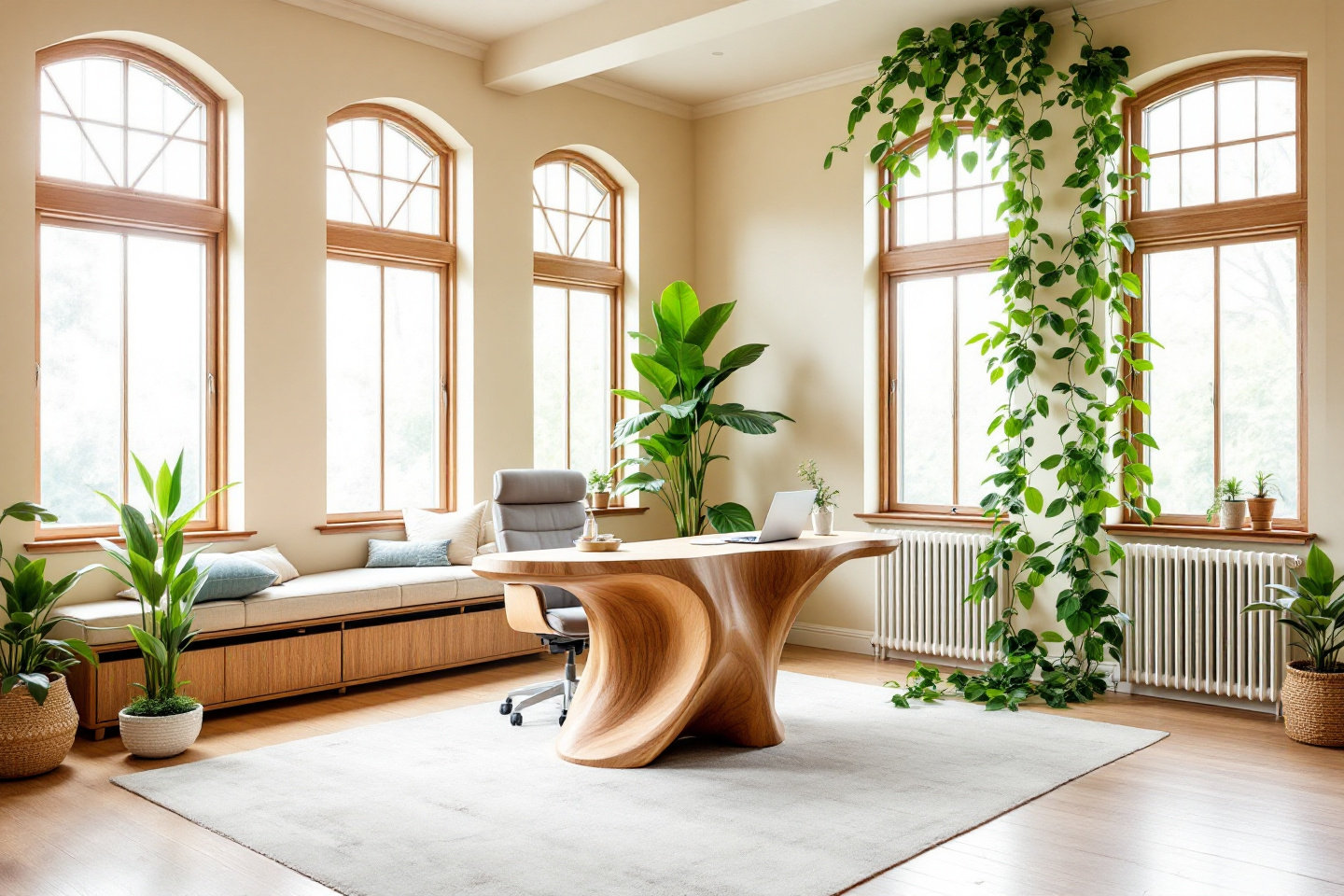 Uredi: vertikalni vrtovi ili zidovi od mahovine potiču produktivnost; prirodno svjetlo i stolovi s glinenom završnom obradom stvaraju prostore za koncentraciju.
